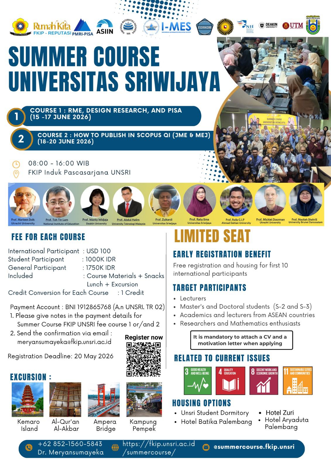 Post Views: 17 By adminMarch 17, 2026NewsLeave a Comment on Summer Course PMRI-PISA-Scopus Journal Unsri 2026